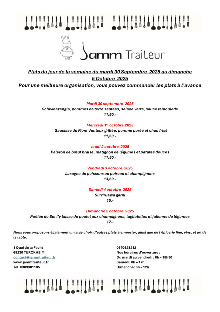 Plats du jour cette semaine